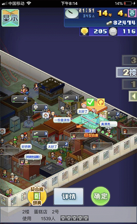 最后是商店布局。给新楼层铺商店的时候,先把电梯位置定死,最好是塞在角落里。然后开始放商店,优先放那些租金高的。靠墙的商店门朝外,中间的商店就背对背放,这样最省地方。一通操作下来肯定会有些零碎的1格小空间,别浪费,用那些占地1格的小设施填满就行了。