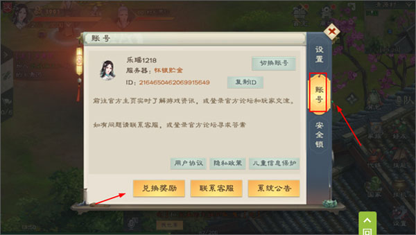 2、在设置菜单里,你会看到一个“账号”相关的选项,点进去之后再选择“兑换奖励”功能。