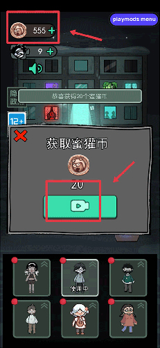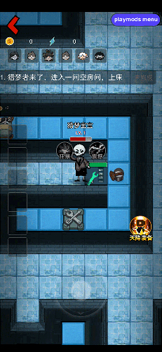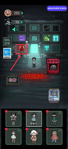启动魔鬼宿舍游戏后,第一步操作是点击playmods menu按钮。。