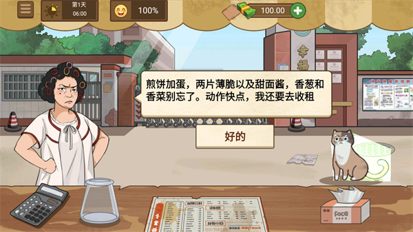 3、加入真实生活中常见的煎饼摊成为游戏主题,深入了解摊主的日常生活经营,增加代入感;