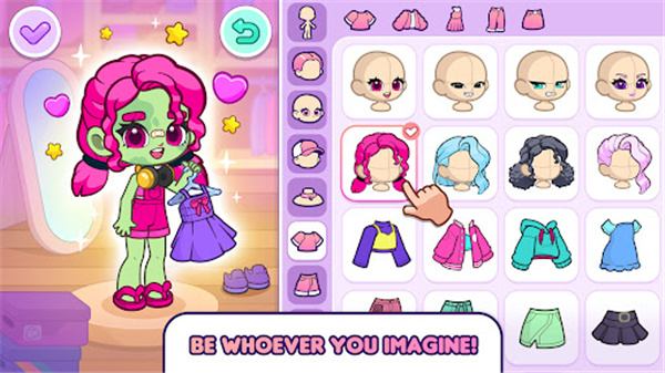 1、创建完美无瑕的角色,可以是真实明星、玩家的样貌或私设,选择各式各样的发型、服装和配饰;