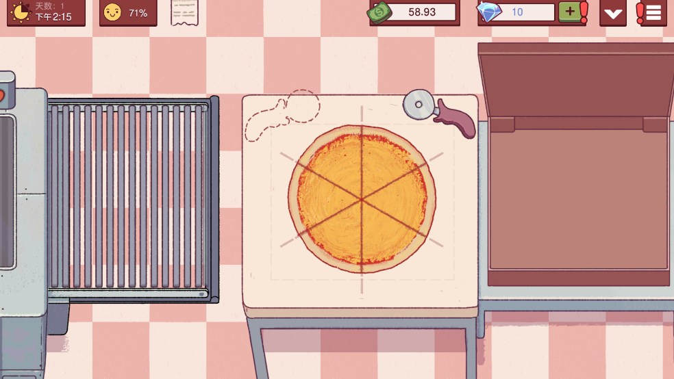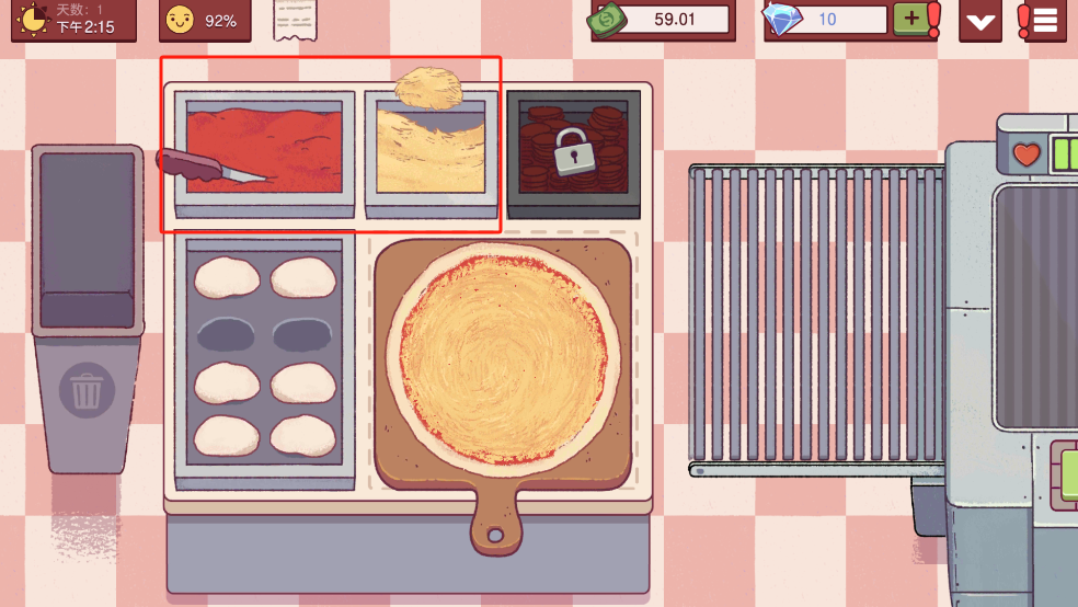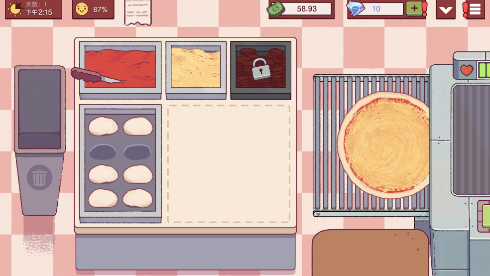 1、游戏一开始,你就在自己的披萨店后厨里,等着给上门的客人做他们想吃的披萨。