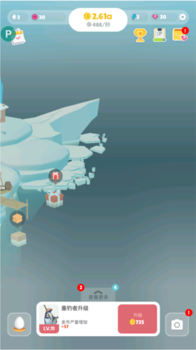 金币怎么花最划算?当你的目标建筑花费跟你现有的金币、以及每秒产出的金币差不多的时候,一定要优先造企鹅,能有1.5倍的增产效果。其次,如果能造新建筑了,那就优先新建筑,然后是钓鱼台。如果新建筑已经出来很久了,那就优先升级钓鱼台,再升新建筑。中间那些过渡建筑,优先级最低,等你钱多得花不完的时候,再长按升级补满就行。