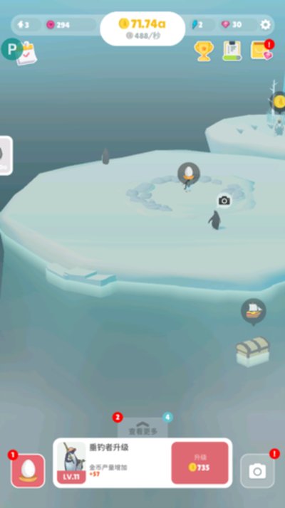 1、随着你的岛越来越大,会有新的企鹅伙伴自己冒出来。你可以把视角拉近,跟屁虫一样跟着其中一只到处看,体验一下当企鹅的感觉。