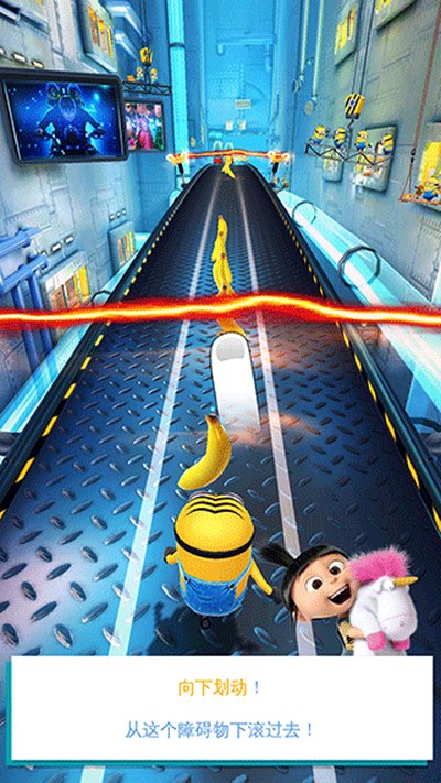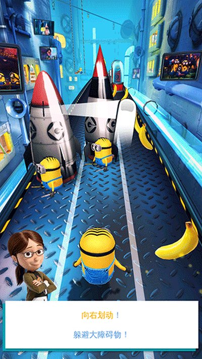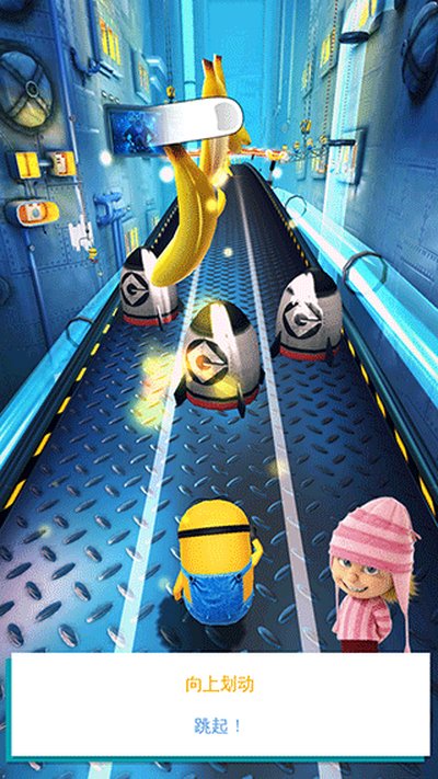 1、游戏里头,小黄人会碰到各种要命的陷阱,不过操作很简单,左右滑动加跳跃啥的就能躲过去,安安稳稳地捡你的香蕉。