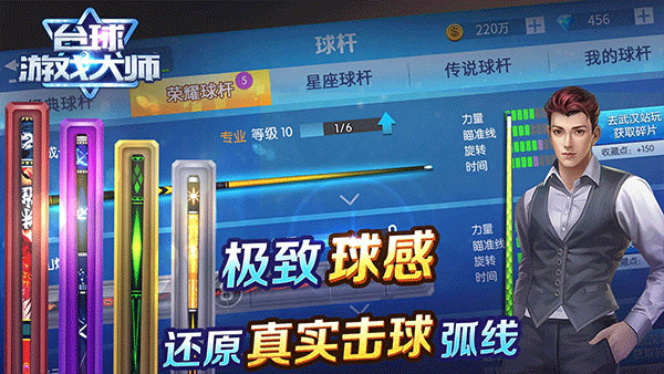 5、多种球杆、桌布等可以解锁使用,与更强大的玩家竞技,打败对方。