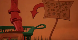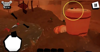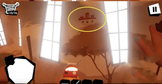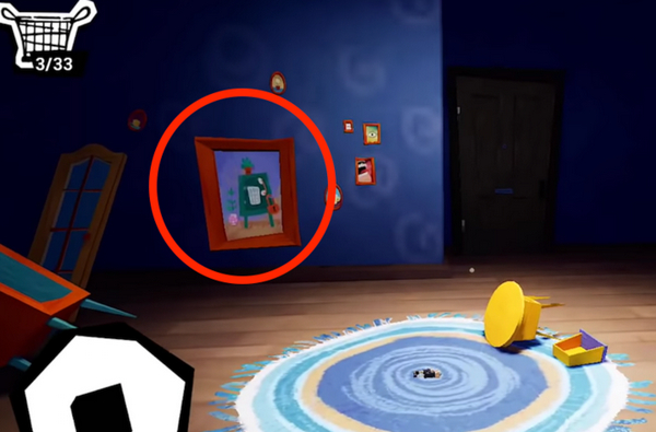 这关的目标是找齐16个娃娃,然后全扔进篮子里。瞅瞅下面截图这个篮子,就是终点。当然,全程都不能被那个小男孩抓到。