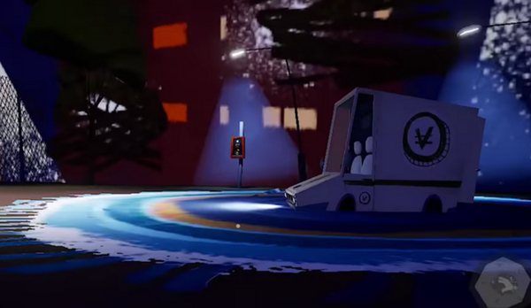 在下面截图这个游乐场里,停着一辆运钞车,车里装满了钱袋子。