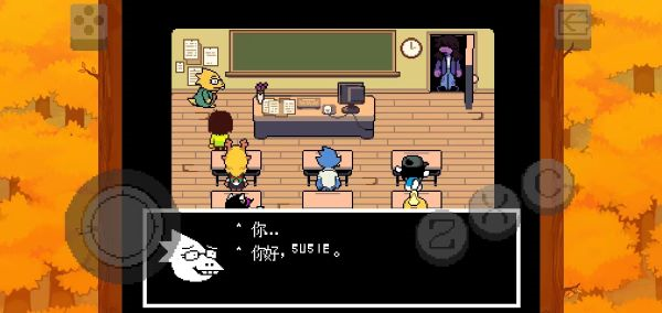 6、克里斯到校时,正赶上老师艾菲斯(Alphys)在公布一项必须两人合作才能完成的小组任务。你懂的,克里斯到的时候,班上的人早就自己找好伴了。此时,玩家需要操作角色移动到第一排最左侧的同学旁边,按下“乙”键与其对话,随后会有新角色进入场景。。