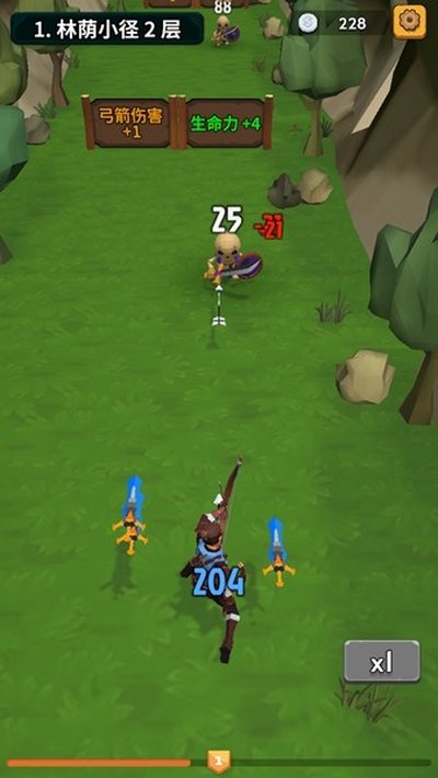 核心玩法融合了随机技能系统,玩家可根据战局自由组合攻击与防御技能。在每个关卡结束时,通过精准选择升级属性来构建独特战术,合理运用技能组合,在关键时刻实现战局逆转。