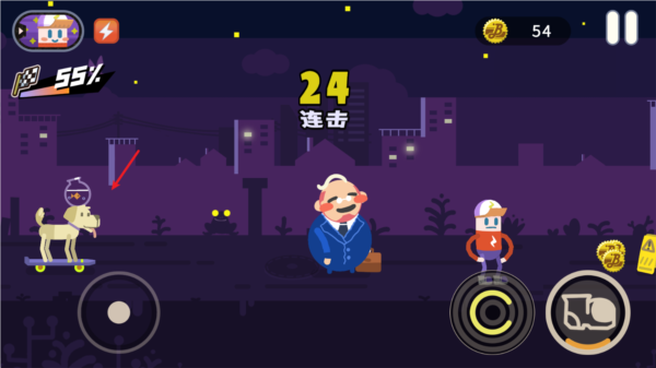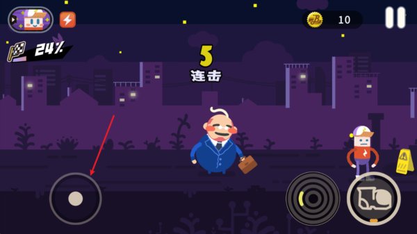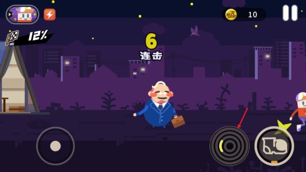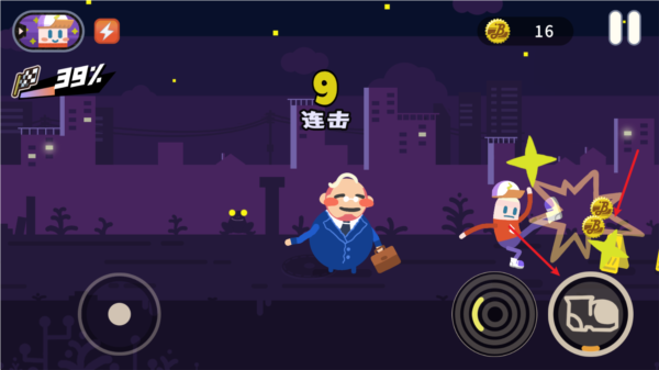 2、你得跑在你那醉鬼老爹前面,用右边的攻击键把路上的垃圾桶、小混混什么的都给踹飞。