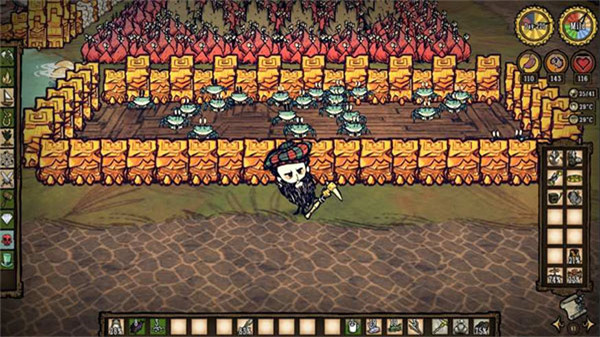 饥荒巨人国是一款属于高难度生存冒险类型手机游戏,整个世界充满各种未知和危险,森林、草原、沼泽等区域都会随时出现各种奇怪生物,为了活下去,需要不断地收集各种资源、制作工具、搭建工作台、打造武器和居住地,在严酷的环境下寻找食物、抵御怪物和应对季节的变化,每一天都像是在和世界进行一场生存较量。