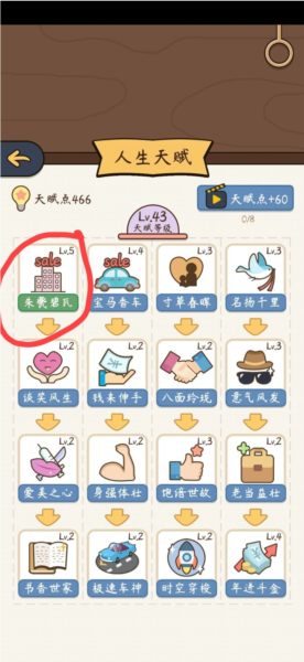 5. 大概玩了四、五代之后,你手里应该有点钱了,记得去升级人生天赋。天赋页里第一个非常重要,是发财的关键,能让你买房子打折!升级之后,买两套房子,卖掉一套,你就能赚差价。此法为最迅捷的财富积累途径,所有顶尖玩家皆由此发家致富。。白嫖党直接冲就完事了。