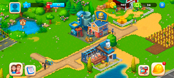 6、另外,游戏里做任务能拿到经验值,每次升级都会解锁新的农作物和建筑,玩法就是这么一步步展开的。