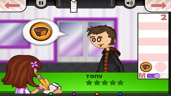 3、跑到制作台,按照提示一步步来。注意看顾客要的是什么口味的冰淇淋,要加什么小料,别搞错了。