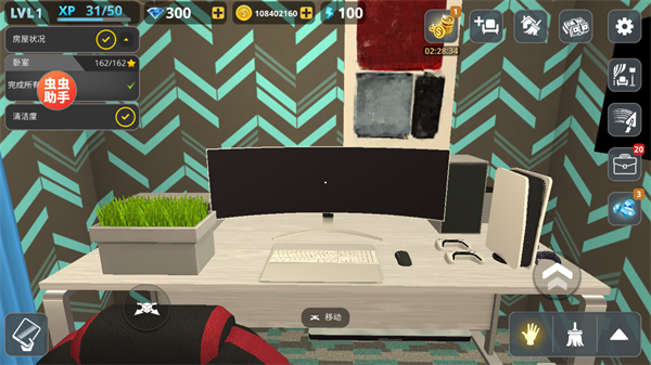4、丰富工具系统:锤子、电钻这些家伙事儿都能解锁,还能升级技能提高干活效率,从打扫卫生到安装马桶,流程很全。