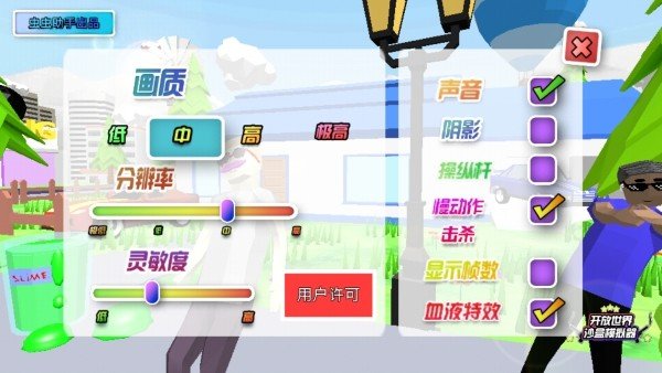 2、进入设置界面,可调整画质、分辨率与操作灵敏度。