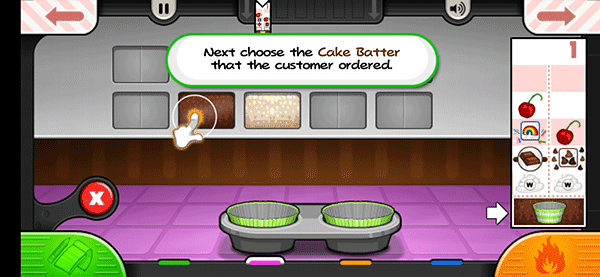 1、进入老爹蛋糕店游戏后,首先接收客户的订单,然后切换到面糊点开始打开纸杯蛋糕
