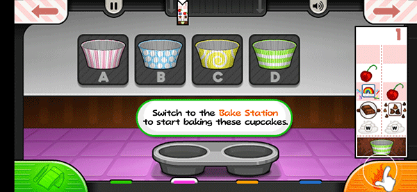 5、然后切换到烘培站开始烘焙这些纸杯蛋糕