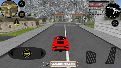 左侧控制移动与加速,右侧为绳索、攻击与跳跃,右上角可切换武器并查看血量与经验。战斗中击败敌人可获得经验,但会提升通缉等级,引来更多敌对势力与警察,需要注意生存与走位。