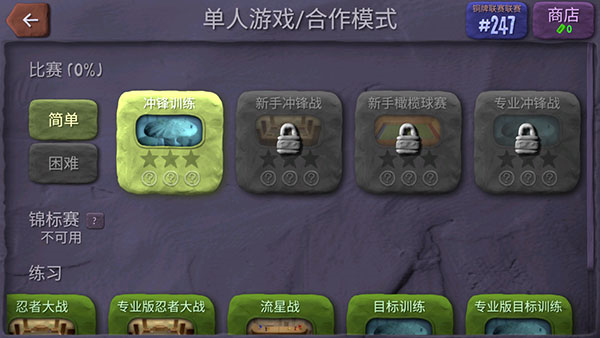 5、 我这里就拿单人模式举个例子了,点进去默认从“冲锋训练”第一关开始。