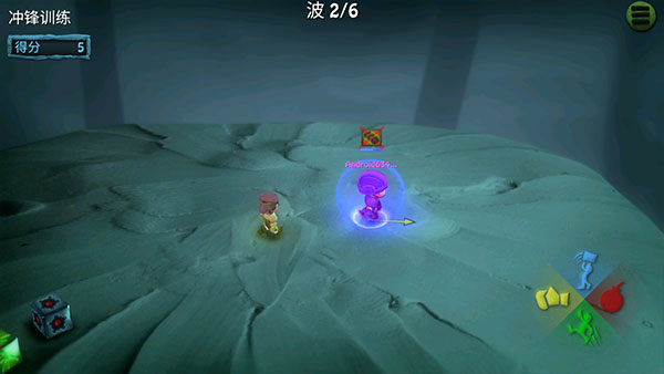 7、 新手教程搞定后,就进入实战演练了。关卡里会随机掉下来各种箱子,记得要去捡。左上角是你的得分,玩命干掉所有对手吧!