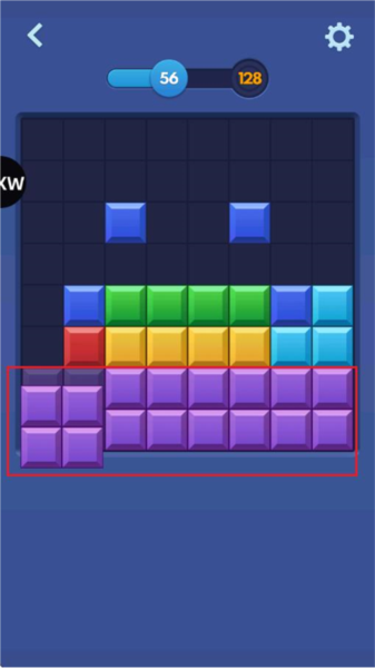 3、玩法很简单,把底下给你的方块拖到上面那个8x8的棋盘里。