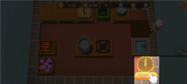 8、看屏幕上方那个倒计时,那就是你的死线。必须在时间走完之前完成任务,不然就直接GG。(顺便提一句,在倒计时结束前,你可以疯狂做同一道菜,做得越多,最后拿到的星星评价就越高)