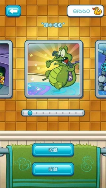 1、这游戏细节做得是真到位。你没事点点游戏封面,那个喷头、鳄鱼鼻子、收音机都会动。点那些鸭子还会叫,音调都不一样,闲得蛋疼可以戳着玩。
