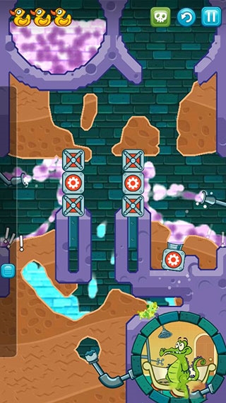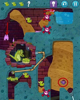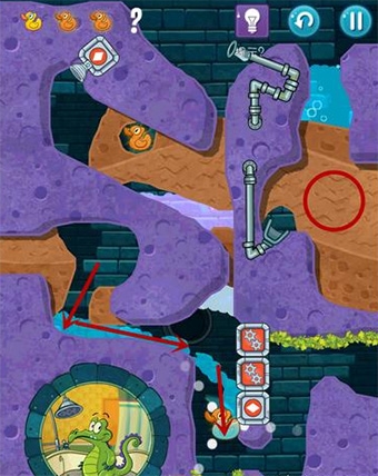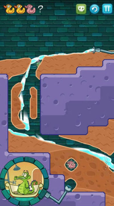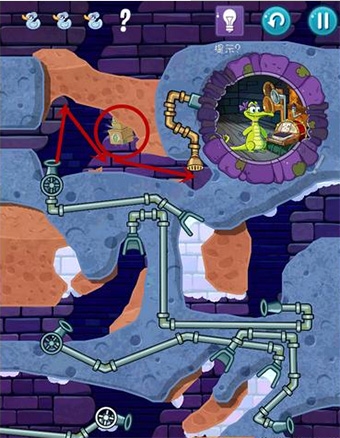 2、小顽皮的故事线就是最经典的,帮这个住在下水道但有洁癖的小鳄鱼接通热水管洗澡,可以说是梦开始的地方。