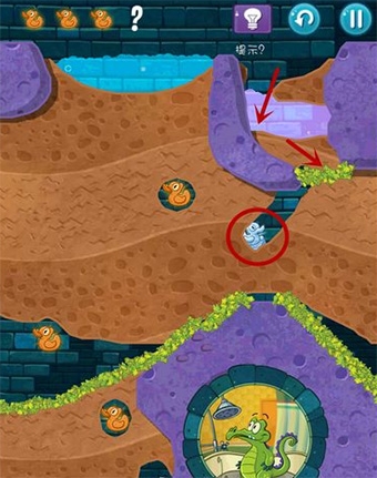 8、最后,照着我截图里画的路线挖开土,把清水引下来,吃到最后一只鸭子,然后一股脑全灌进小顽皮的浴室就过关了。白嫖党直接冲就完事了。