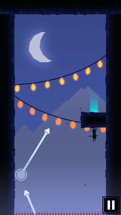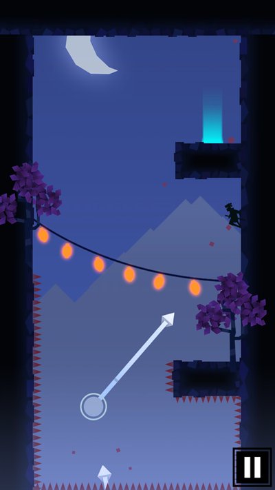 2、你要控制的就是个忍者,玩法核心就是跳来跳去,躲开地图上那些乱七八糟的障碍物,最后摸到终点就算赢。