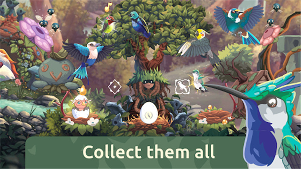 3、玩家只需收集羽毛、加强鸟类等级、产出更多的鸟类,解锁广大的森林;