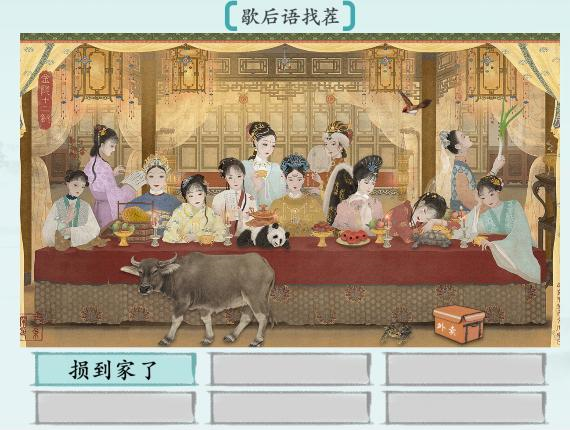 这关是让你找出歇后语对应的东西,玩起来挺逗的。比如把熊猫拖到外卖箱上,就凑成了“熊猫点外卖——笋(损)到家了”。