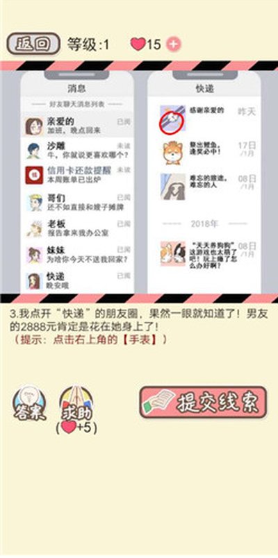 1、这游戏接地气,直接把微信聊天、购物账单这些咱们生活里常见的东西做成了线索。