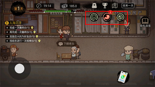 4、右上角是你的人物状态,什么饱食度、健康值之类的,这玩意儿比命还重要,得一直盯着。