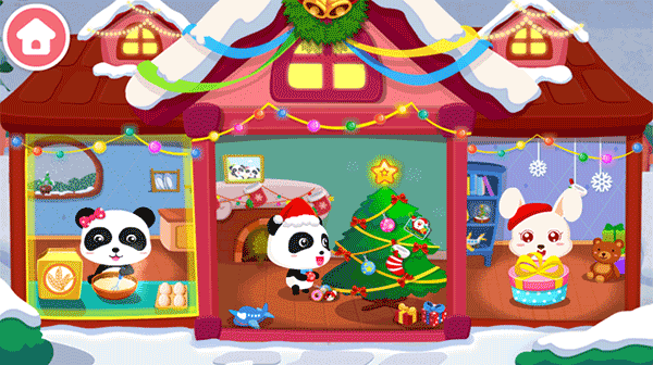 1、给了三个不同的场景让你来回折腾,里面的互动小玩意儿也不少,不至于玩几分钟就腻了,能让节日气氛更浓点。