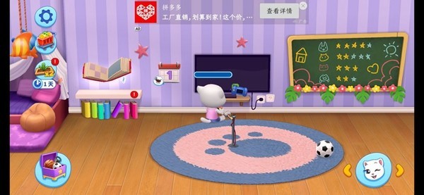 画面这块儿没得说,3D效果挺舒服的。新家贼大,好几个房间让你随便逛,到处都是可以互动的地方。也能跑出去院子里玩,活动空间给得足,不会觉得憋屈。