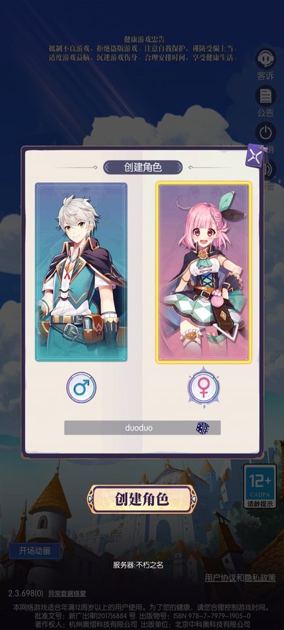 登录后头一件事就是捏人,选个妹子角色,再随便整个ID。