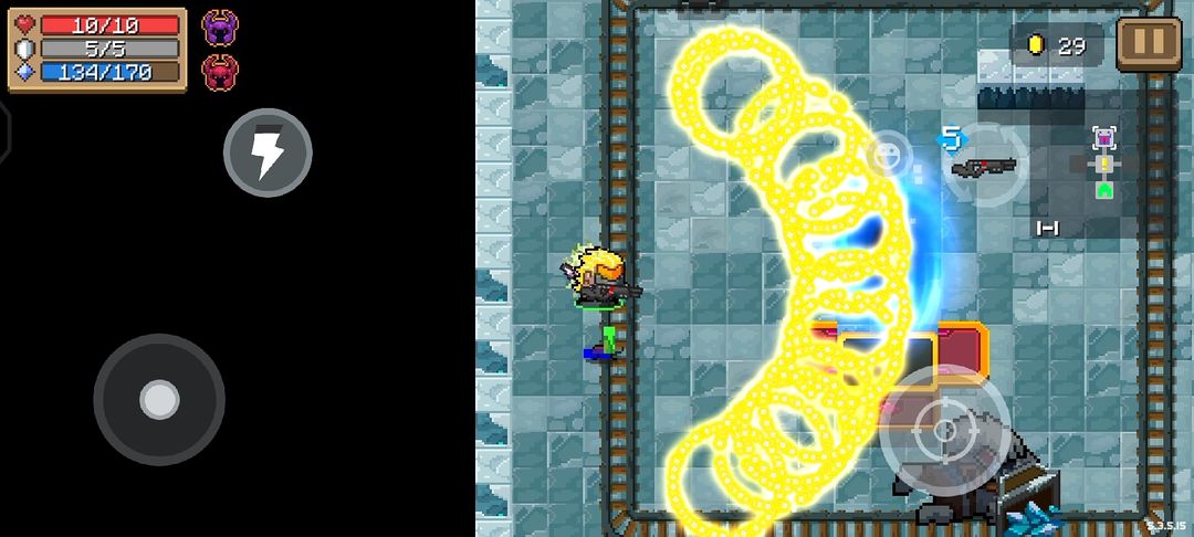 挥动法杖射出一圈扇形的冰锥,暴击了就能冻住人。按住攻击会减移速。它本身暴击率就高,子弹数量也多,所以控场能力很稳定。