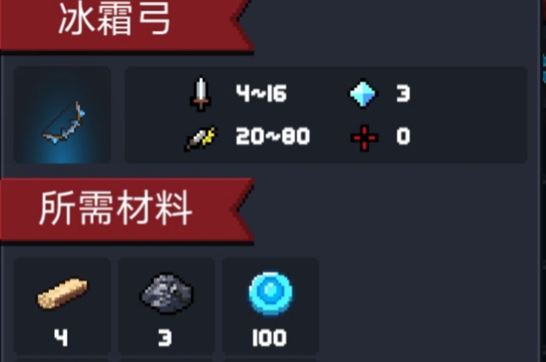 现在大伙儿一说弓就是群星之弓,冰霜弓基本都被当成合成材料了。其实这把弓本身也是个被低估的宝贝。蓄力型的弓,暴击能冰冻敌人。它的暴击率非常高,配个冰盾天赋,控场效果相当不错。