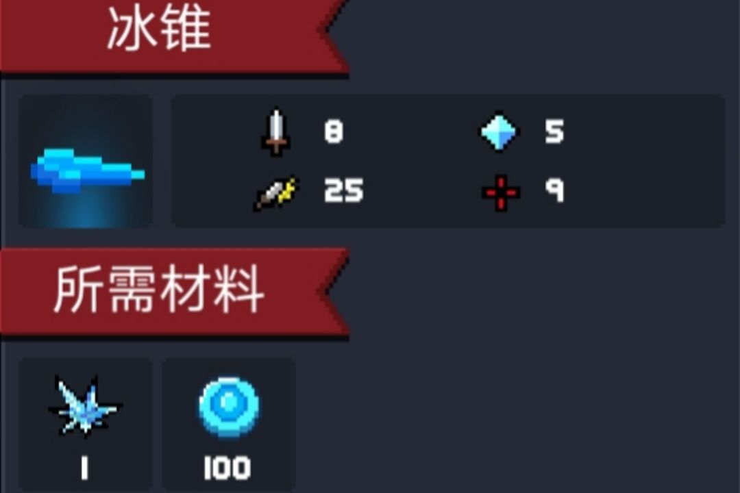 控制能力极强的一把投掷武器。蓄满力扔出去一堆冰锥,暴击就冰冻。因为它的暴击率很高,基本上蓄满扔出去必定能冻住敌人。强烈推荐当副手控制用,别拿它当主武器打输出了。