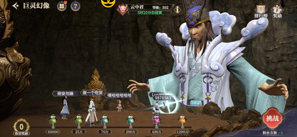 正是凭借“忽闻海上有仙山,山在虚无缥缈间”这样的描述,他成功地让那位功业显赫的帝王信以为真。。现在,他带着一大堆资源来了。你可以通过挑战他的幻象来刷奖励。每人每天能打5次,奖励是按你伤害最高的那次来算。所以,为了收益最大化,最好是把自己战力拉满了再来挑战,不然就亏了。