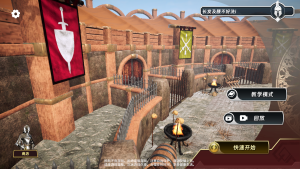 1、游戏准备就绪后,一打开就会看到主菜单。这里有几个主要选项:“教学模式”能带你熟悉基本功;“商店”里可以淘到各种好东西;“回放”功能则能让你重温自己的高光时刻。要是等不及了,直接点“快速开始”就能马上投入战斗。