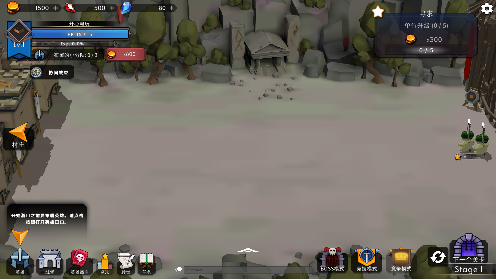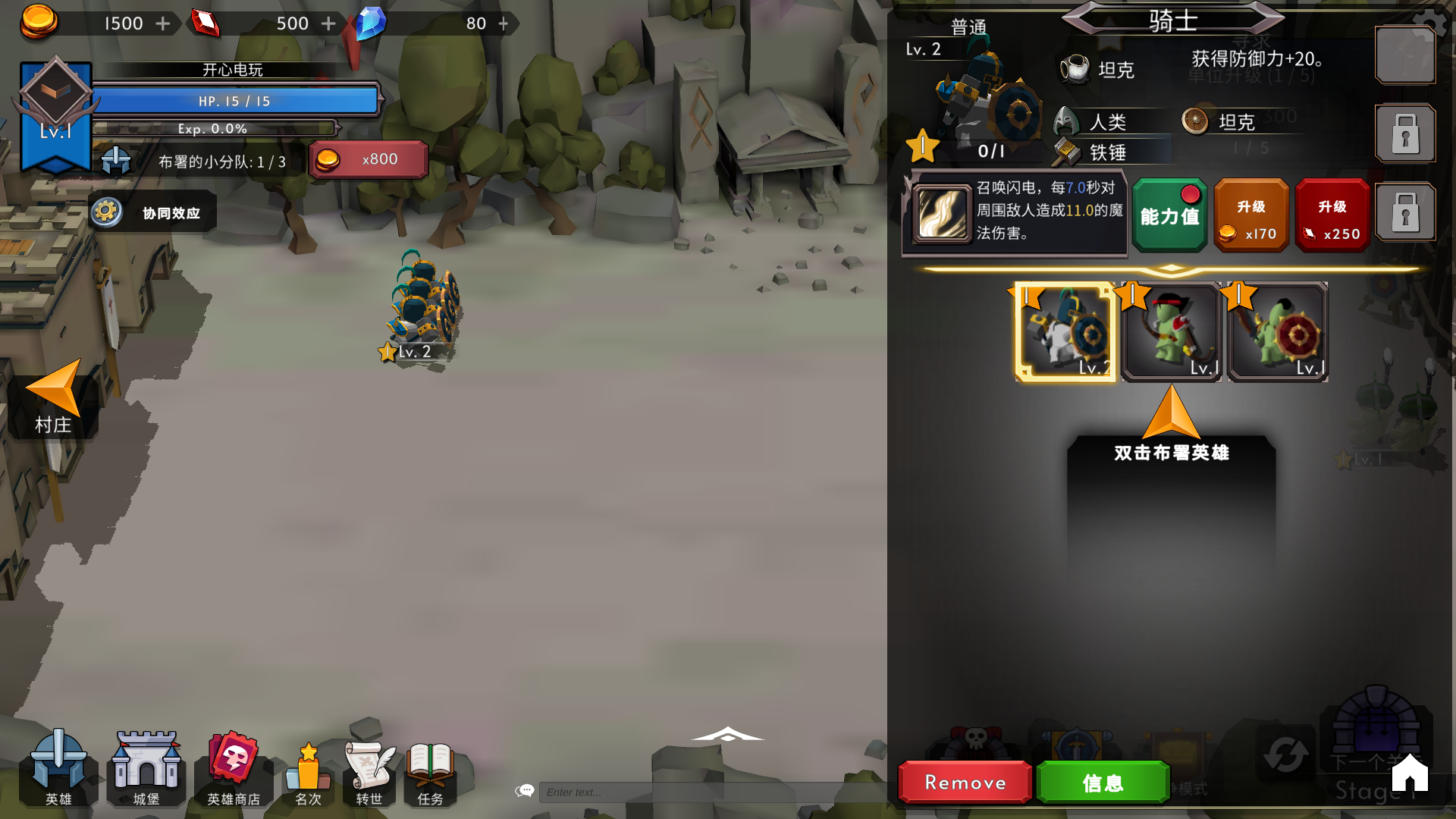 3、正式开始后,可以点击界面左下方的英雄按钮,在这里你可以对你的部队进行战前部署。