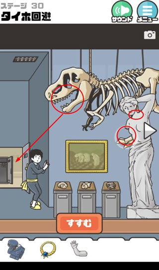 1. 先点恐龙嘴里,拿到钥匙。用钥匙打开后面的门,拿到制服。