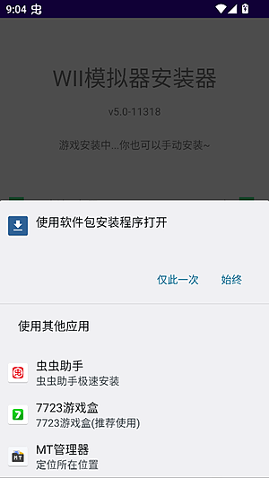 2、进去之后它会自动走安装流程,装的是海豚模拟器。装完看到右下角那个加号没?戳一下。