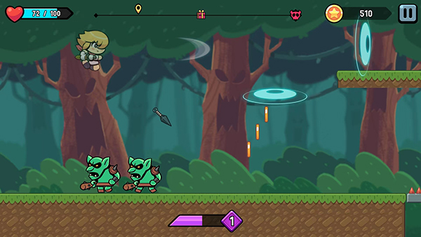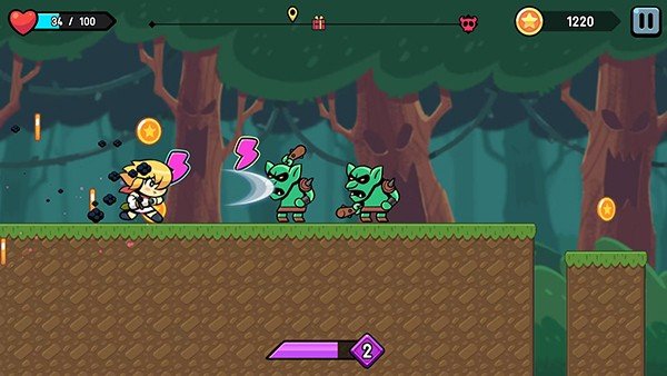 2、当我们触碰屏幕的时候可以进行一边跳跃一边进行空中攻击,连续点击屏幕还可以实现二连跳。