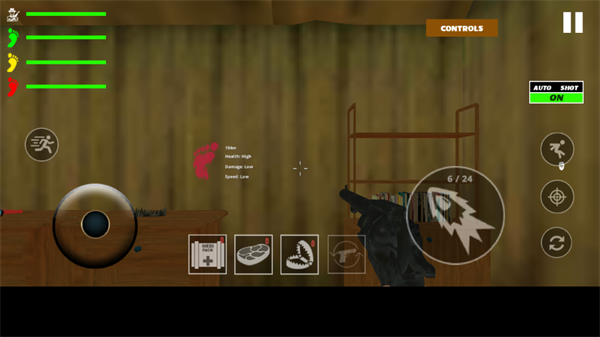 4、进入到游戏对战界面中去,我们需要根据自己的需求收集相应的医疗包、肉、陷阱、子弹。