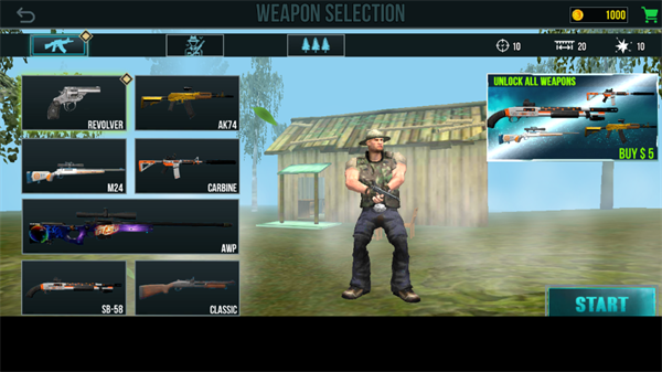 3、成功进入到游戏登录界面,在这里我们能够选择不同类型的武器开始游戏。